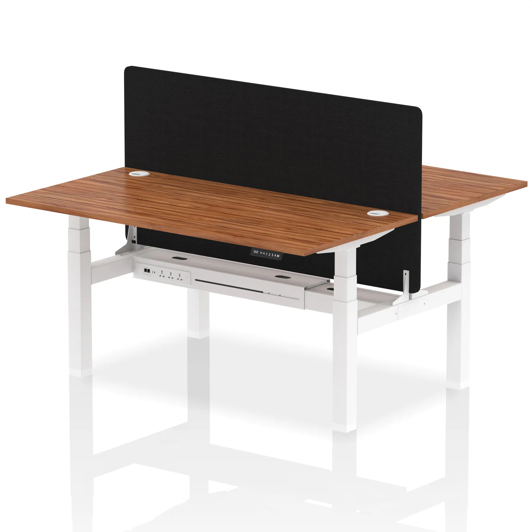 Air Back-to-Back Height Adjustable Bench Desk – 2 Person with Black Straight Screen