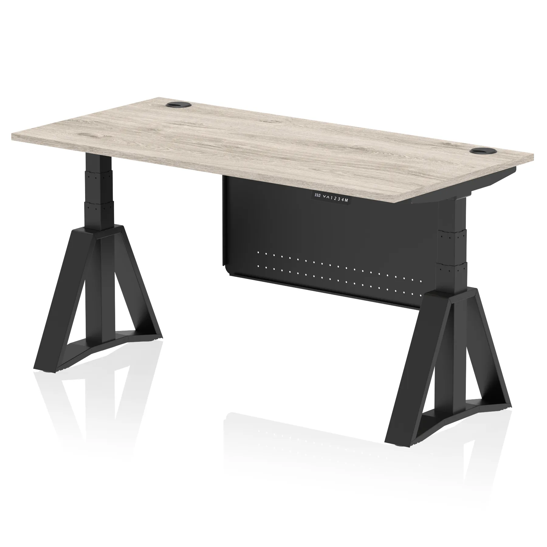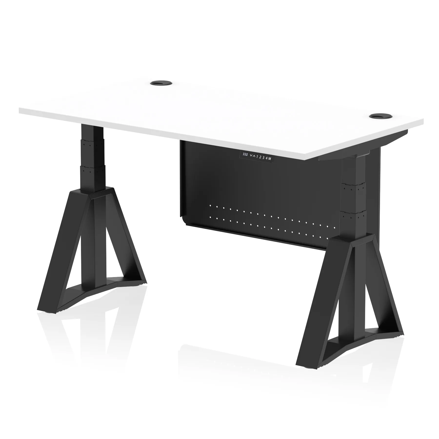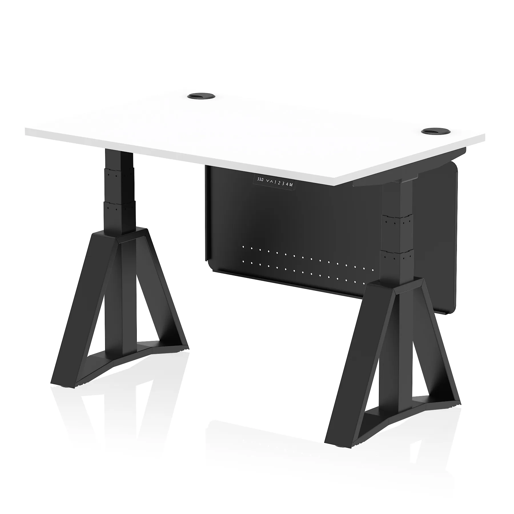 Be the first to review “Air Height Adjustable Desk With Cable Ports With Steel Modesty Panel With Piste Foot”
