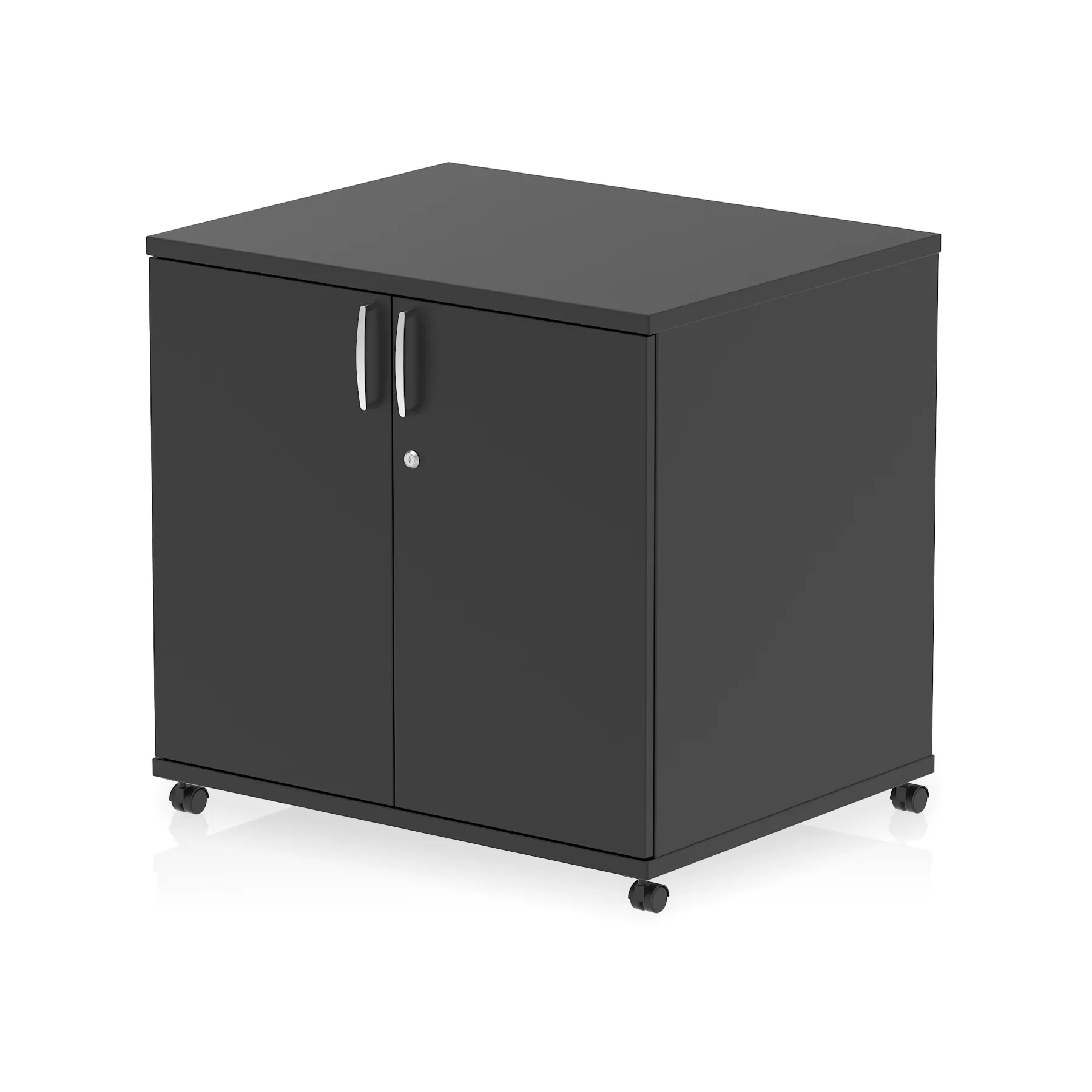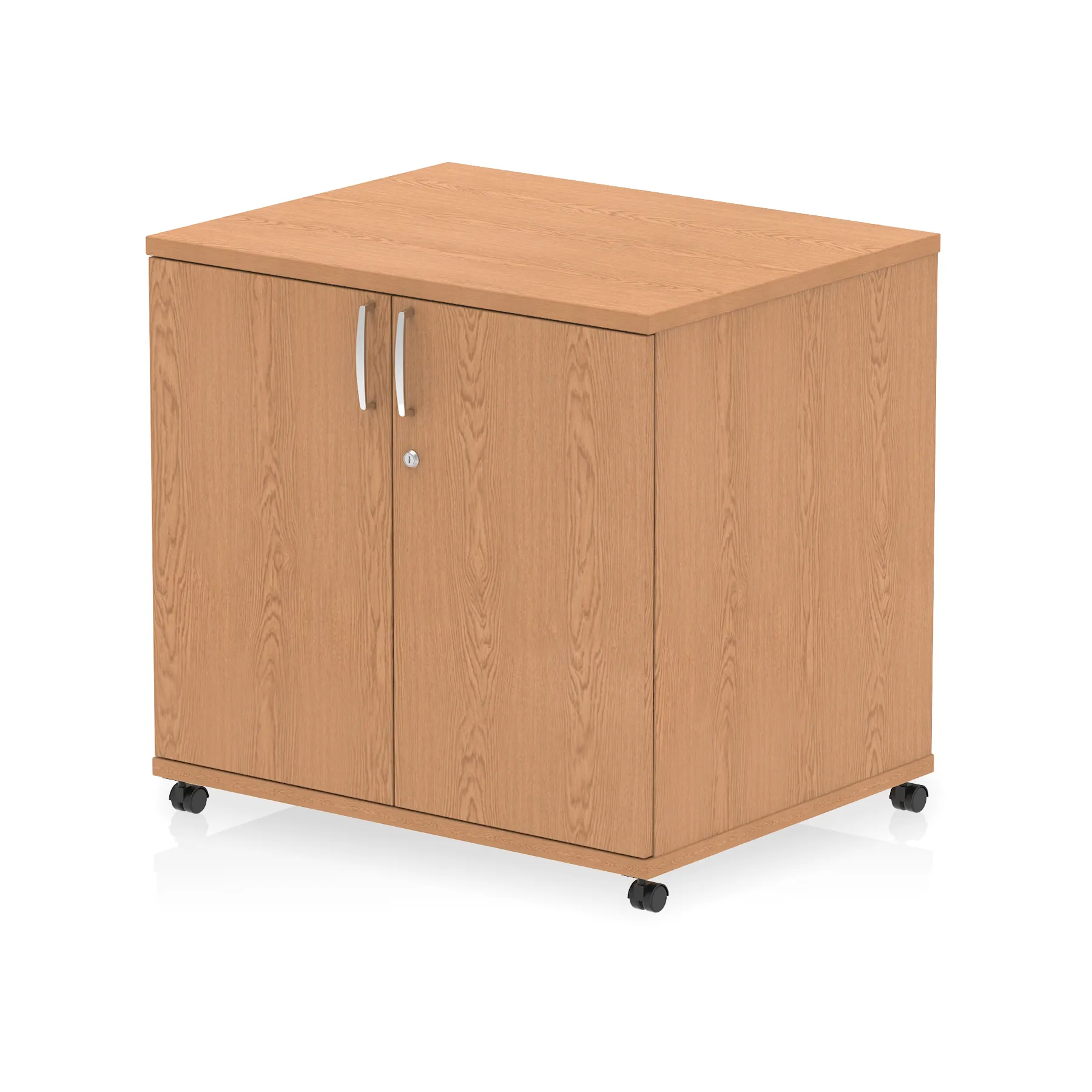 • Impulse 800 wide cupboard • 25mm thick wood finish • Fits on end of 600 deep desk • 2mm abs protective edges • Steel to steel fixings • 18mm side walls • Adjustable shelf • Mobile castors • Heat resistant melamine finish • Solid back board • Matching doors • Weight Capacity: 20Kg per shelf