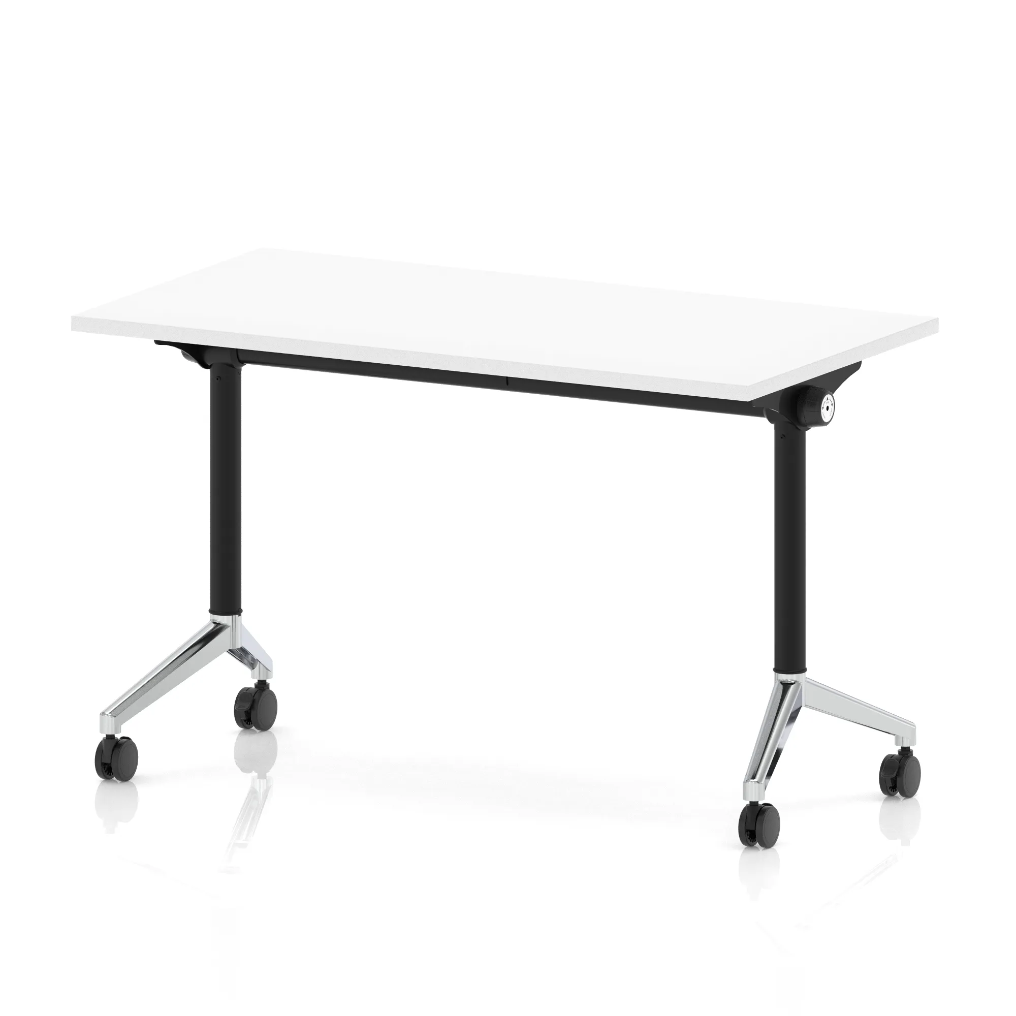 • Impulse Plus freestanding meeting table • Rectangular table flips easily for space efficient storage • Provides excellent team working environment • 25mm thick top • Attractive black and silver coated leg • 2mm abs protective edging • Heat resistant melamine finish • Steel to steel fittings • Weight Capacity: 100Kg