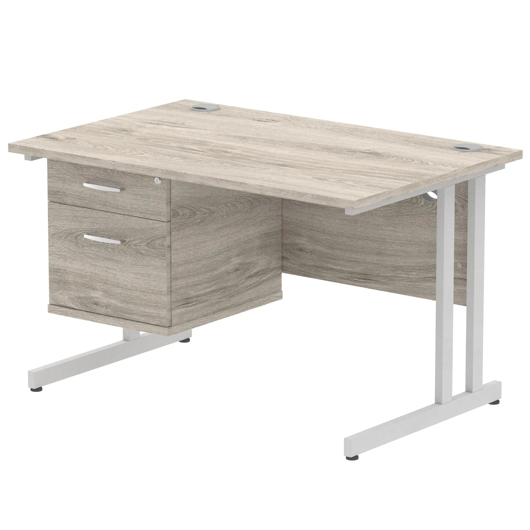 • Impulse contract 1200 wide desk • 25mm tops • Heat resistant Beech melamine finish • 18mm modesty panels • 2mm protective abs edging • White coated double strut legs • 2 cable ports • Height adjustable feet • Steel to steel fixings • 2 modesty panels slots • Deep set modesty panel (5”) allows for compatibility of most screen clamp fittings • Fixed pedestal