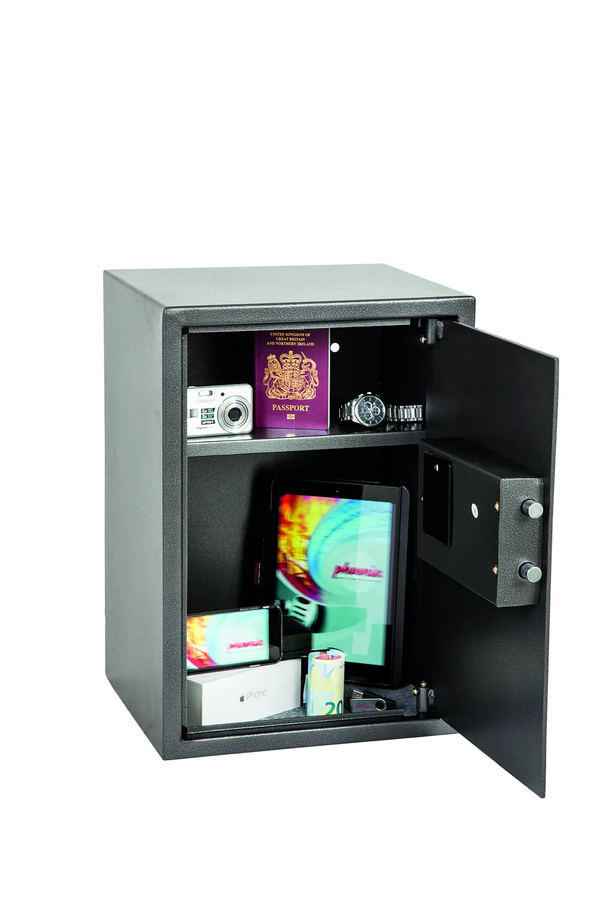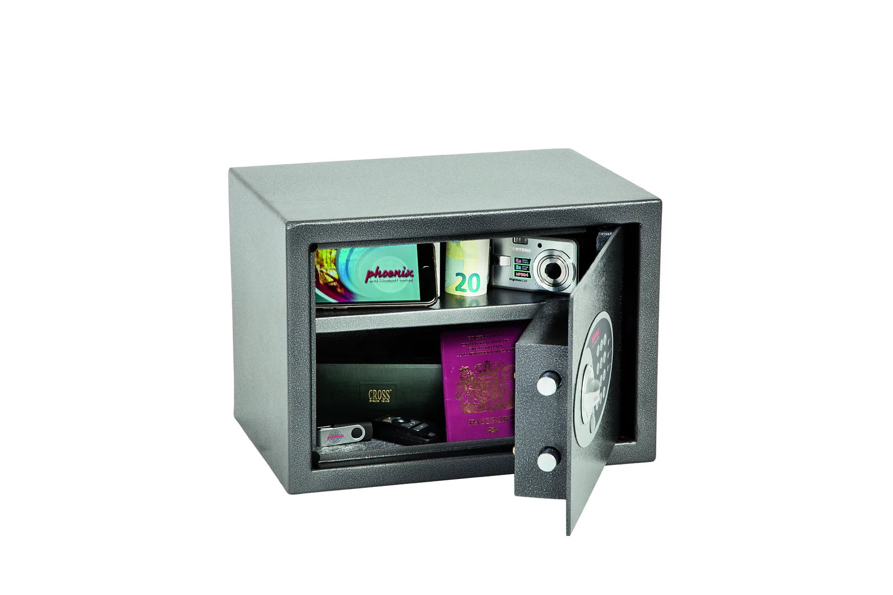 THE PHOENIX VELA is designed for use at home or in the office for storage of valuables, cash and important documents. With its user friendly electronic lock it is ideal for multiple applications.